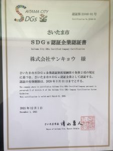 さいたま市SDGs認証企業になりました。