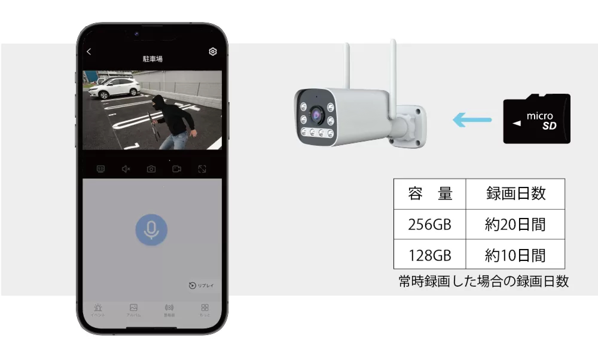 ※ microSDカードは最大256GB対応、古いファイルより上書きされます。