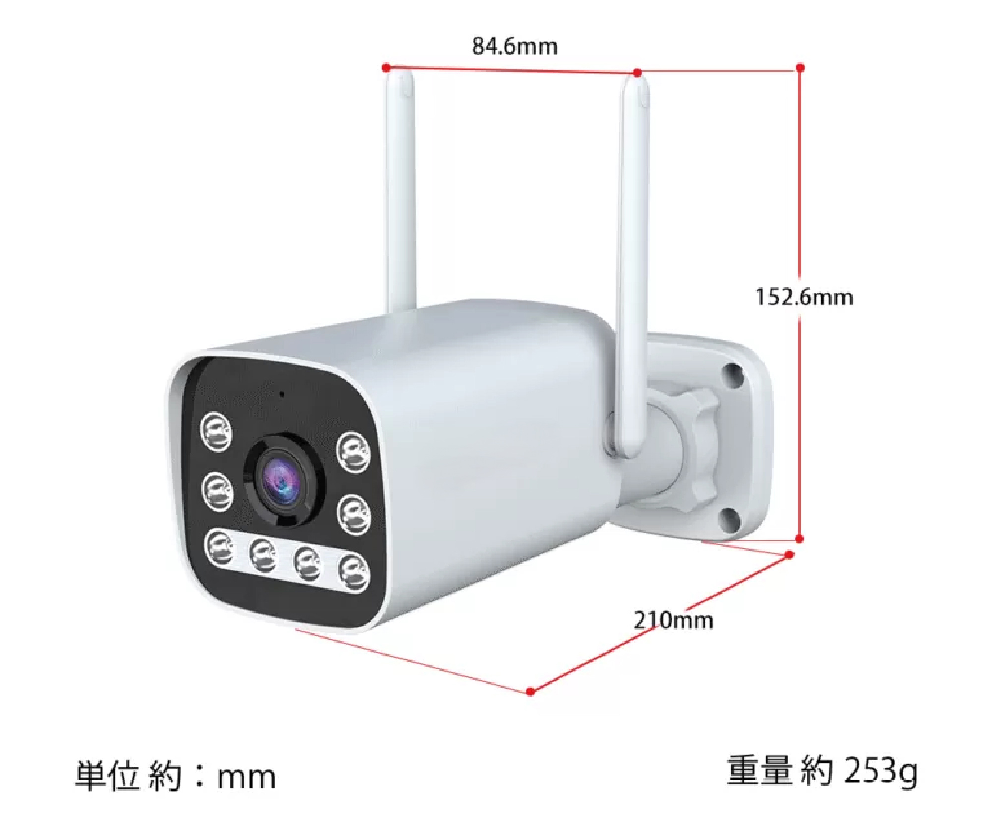 ※赤外線、白色LEDの照射距離は15~20m(環境により異なる)です。